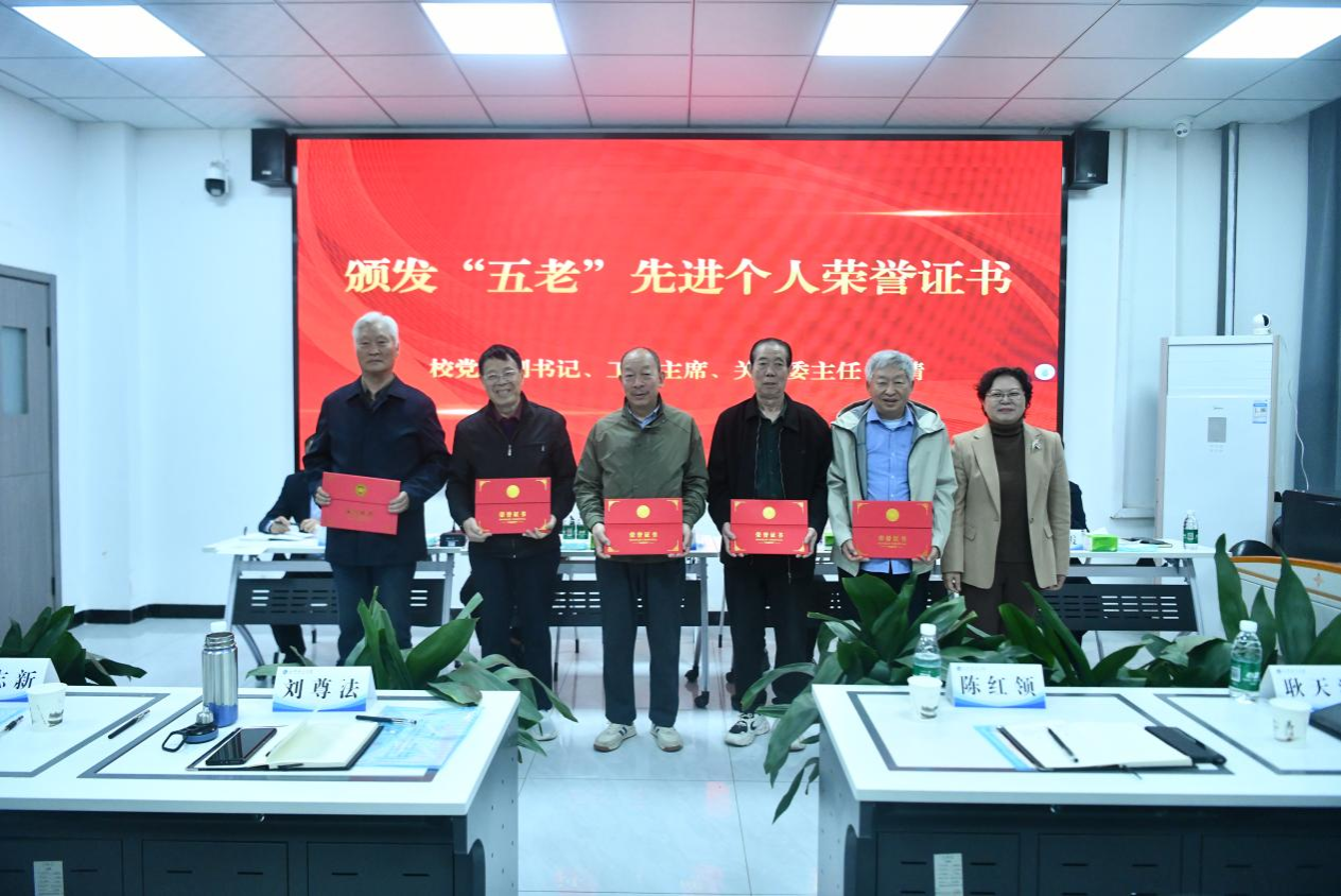 王靖为2025年度“五老”先进个人代表颁发荣誉证书,并讲话。她充分肯定了2025年关工委工作成效,并向广大“五老”和全体关工委工作者致以感谢与敬意。她指出,2026年是“十五五”规划开局之年,是学校深化内涵建设,推进各项工作提质增效的重要一年,提高关工委工作质效,助力学校高质量发展非常重要。就落实好今年关工委重点任务,提升关工委工作水平,她要求:一是提高政治站位,深刻认识关心下一代工作是党的事业薪火相传的战略工程,是学校落实立德树人根本任务的重要支撑,是建设高水平城建大学的重要力量;二是聚焦重点任务,强化思想引领、突出品牌意识、抓实主题活动、推进“五好关工委”创建,确保工作见行见效;三是加强工作统筹,以党建带关建、深化工作融合、做好服务保障,凝聚全校关心下一代工作强大合力,为学校立德树人取得更大成效、加快事业高质量发展做出新的更大贡献。